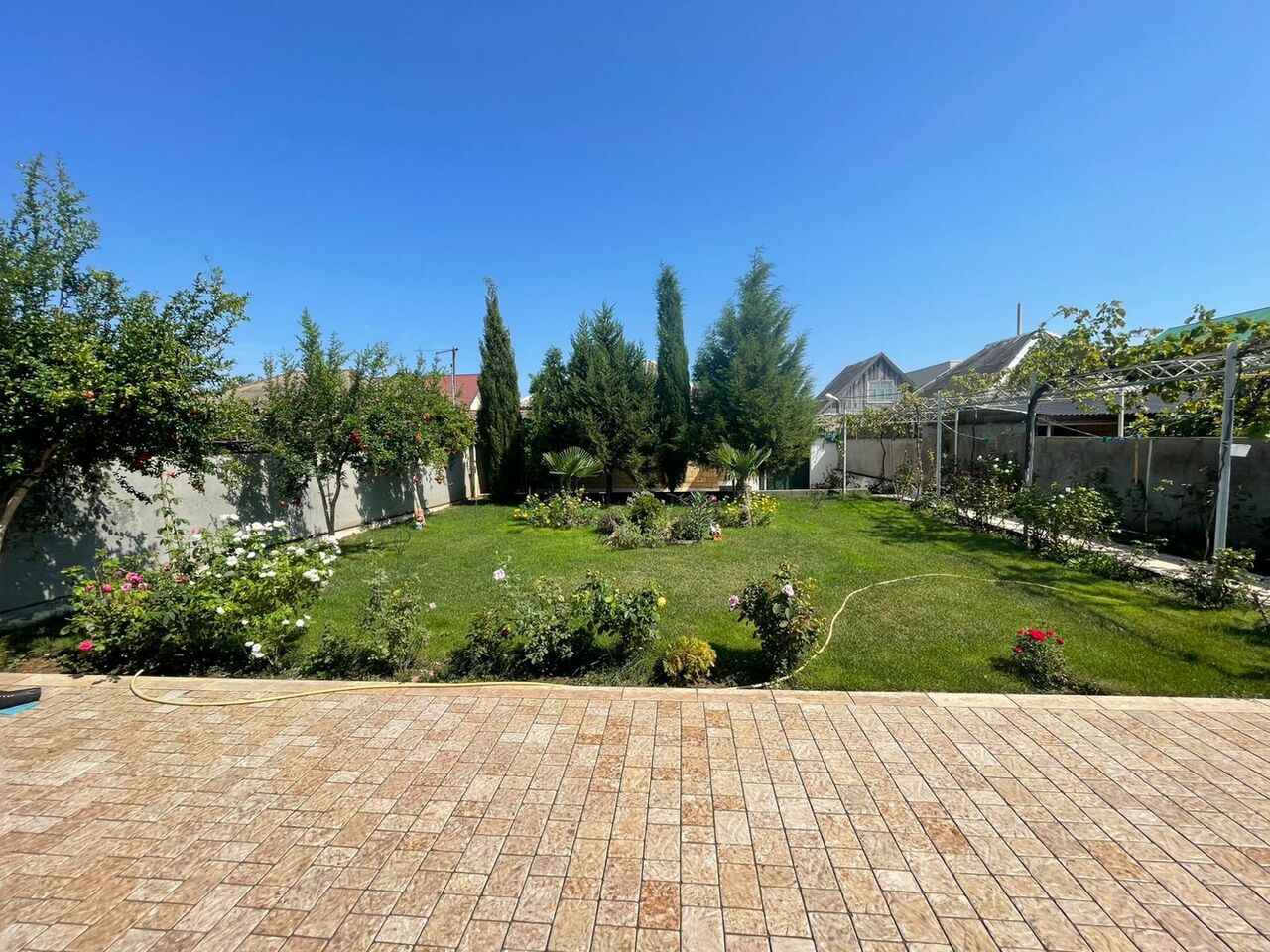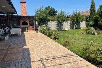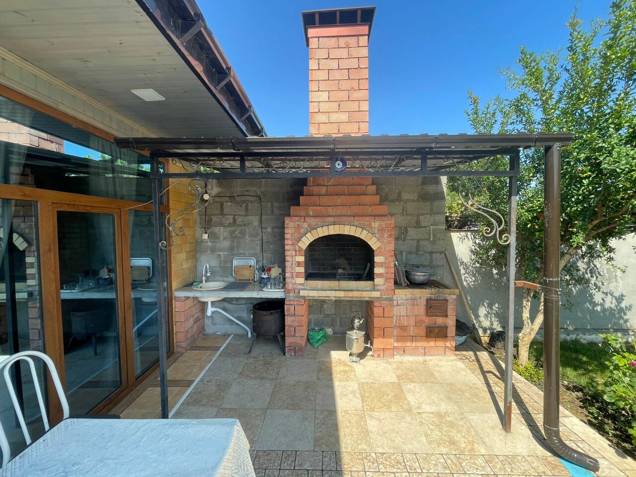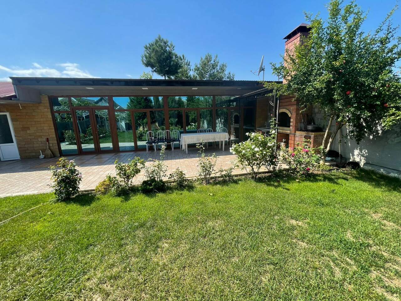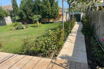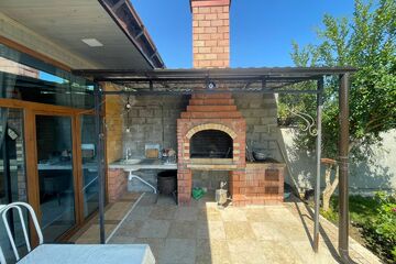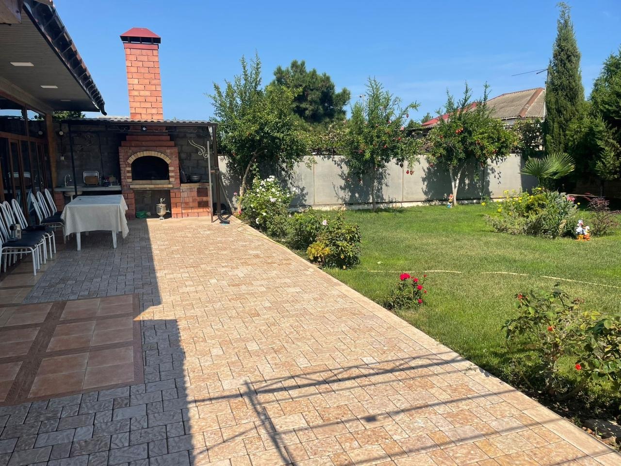 Во дворе оборудованная зона отдыха с ландшафтным дизайном,с зоной барбекю столами и стульями и прочим необходимым инвентарем.