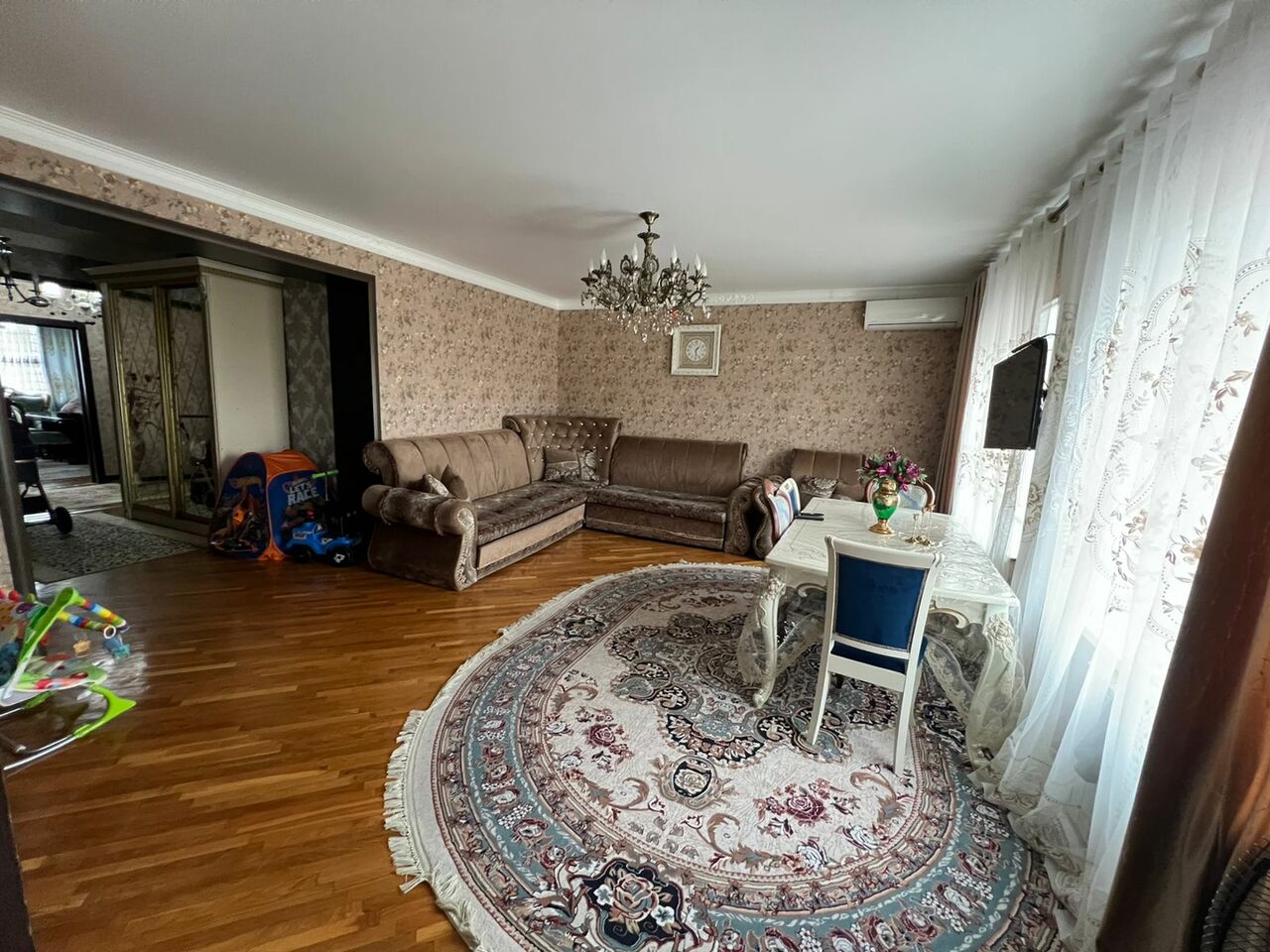 Вашему вниманию предлагаем теплую уютную 5 - комнатную квартиру. Площадь 130 кв.м., жилая 112 кв.м., площадь кухни 18 кв.м. 4 этаж 4-этажного дома, каменей дом.Ремонт свежий,дизайнерский (делали все под свой вкус и цвет )раздельный санузел.
